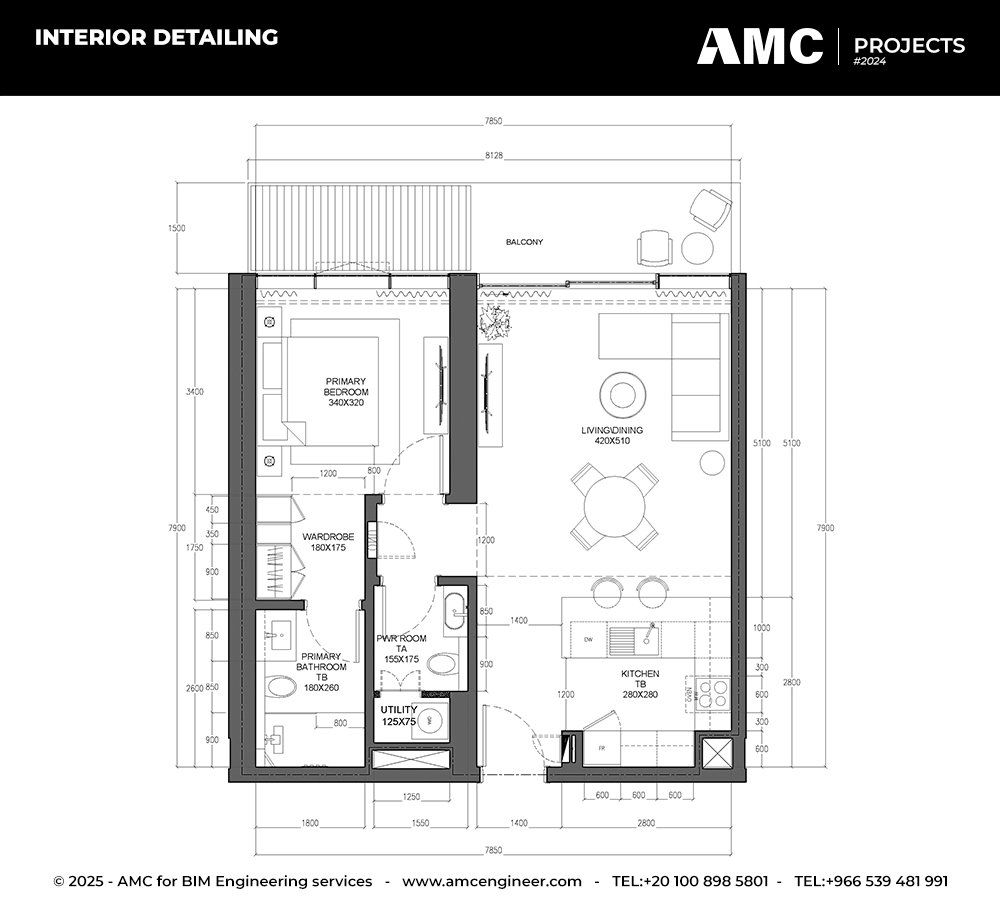 As part of the project deliverables, AMC produced a detailed and comprehensive set of architectural and interior design drawings, including plans, sections, elevations, detailed drawings, and schedules — all meticulously prepared to reflect the latest model updates and coordination outcomes. These deliverables were developed to ensure smooth construction implementation, minimize site conflicts, and meet the client’s specific requirements with consistency and precision.